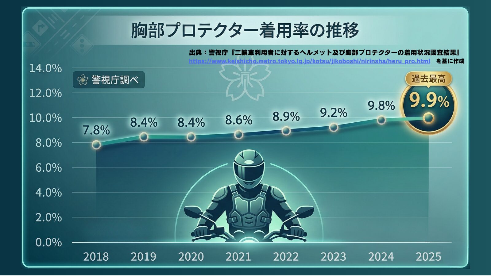 死亡事故の損傷部位、実は「頭部」の次に多いのが「胸部」です。それなのに装着率は約10%。ここを守るのが「生き残る」コツです。