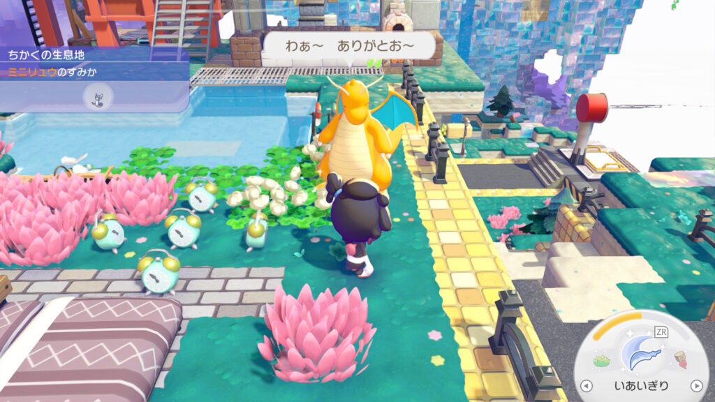 自由に建築できるのも勿論もちろん魅力ですが、ポケモン好きとしては、ポケモンがそこら中にウロウロしてるのが可愛いて良い🫰