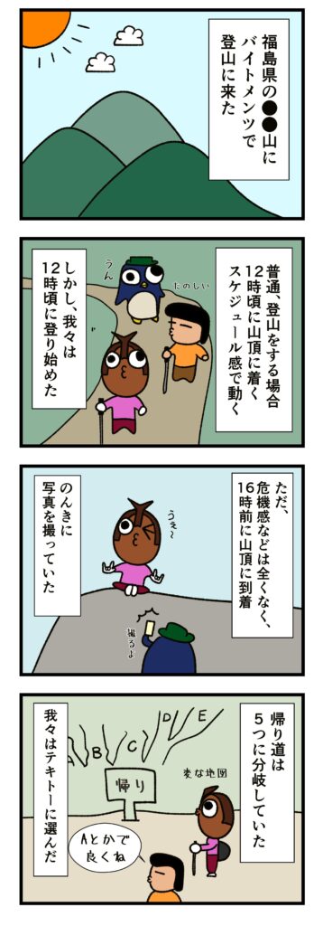 日常昔、登山で体験したことをコミックエッセイとして描いてみました。
