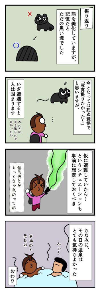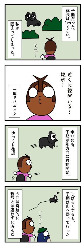 本州には羆(ひぐま)はいないと思われますが、ツキノワグマでも十分怖い。