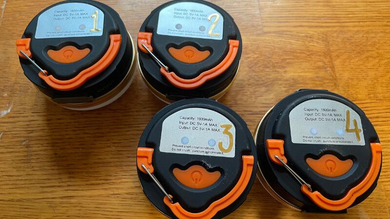 光量ですが、Amazonでは「150 lm」とありました(本当かどうかは不明…)。ですが、4つもあれば十分です。こんな感じで、最低限の明るさは担保できます↓