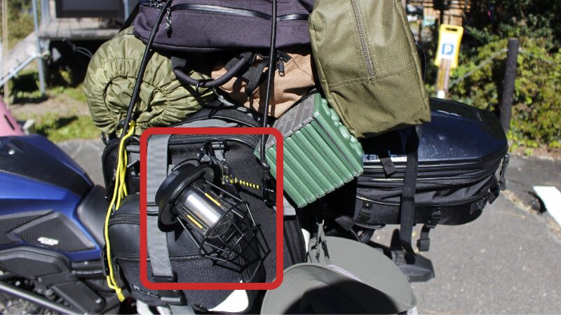ただし、嵩張るのでご注意ください。筆者はどうしても雰囲気を出したいので、1個常備しています。TANAXのシートバッグにカラビナで外につけています↓