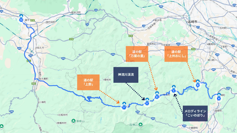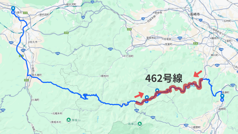 長瀞から長野にでるまで、主に「462号線」「299号線」を進みます。