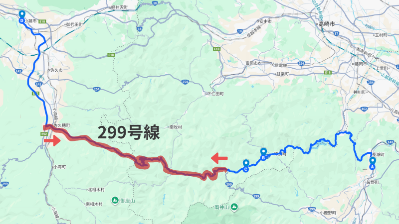 「462号線」は比較的走りやすいのですが、「299号線」は基本おすすめしません(後述)